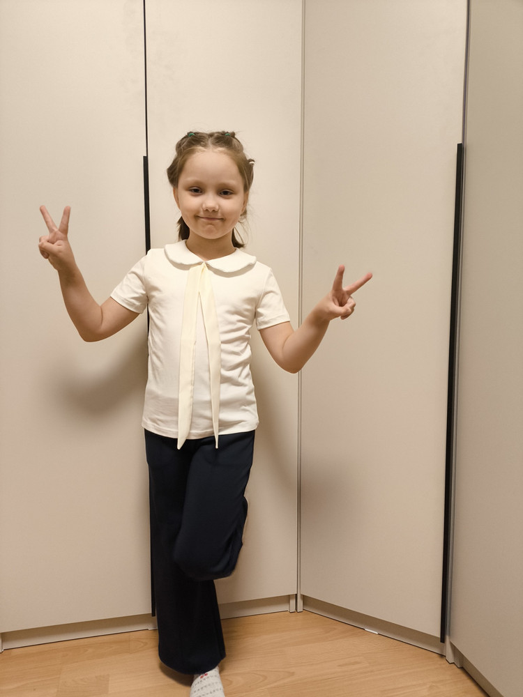 Школьная трикотажная блузка для девочки с атласным галстуком-бантом — стильная и удобная модель, идеально подходящая для повседневной носки в школу и для торжественных случаев. Она сочетает в себе классическую строгость и нежные декоративные детали, благодаря чему создаёт элегантный и запоминающийся образ.